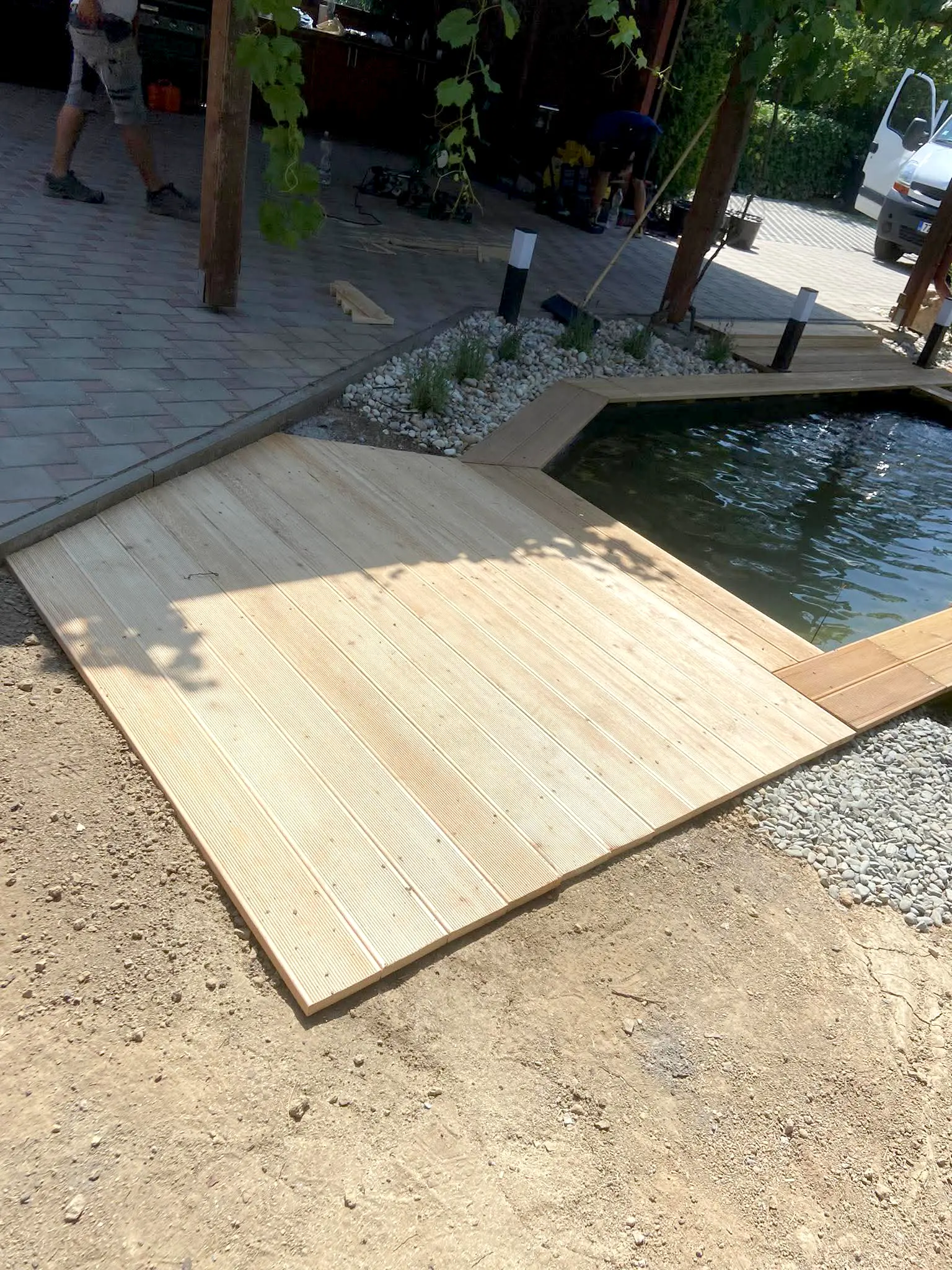 Byla provedena realizace odpočinkového mola a pochůzní plochy okolo jezírka.