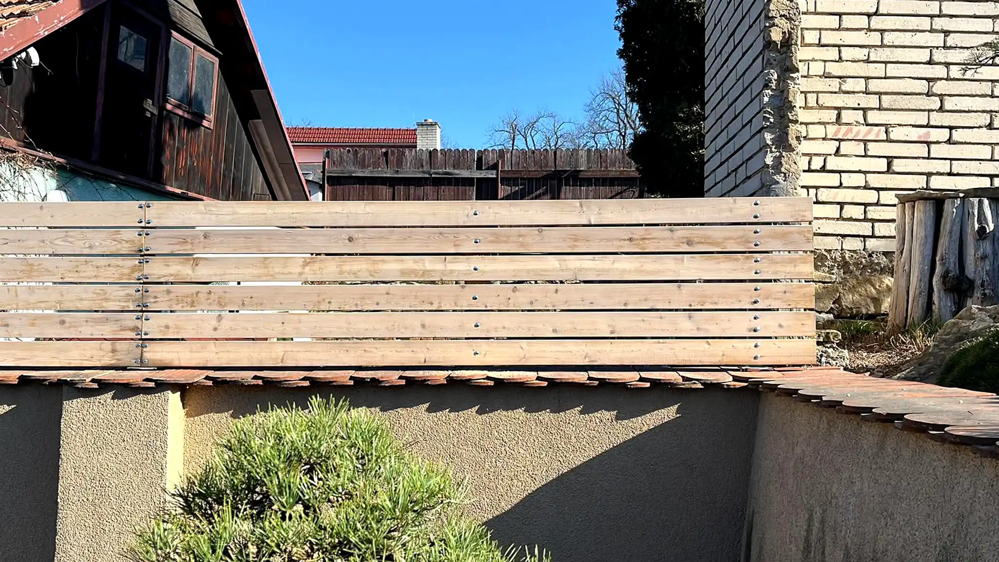 V rámci zachování většího soukromí byla instalována modřínová nástavba na původní zídku.